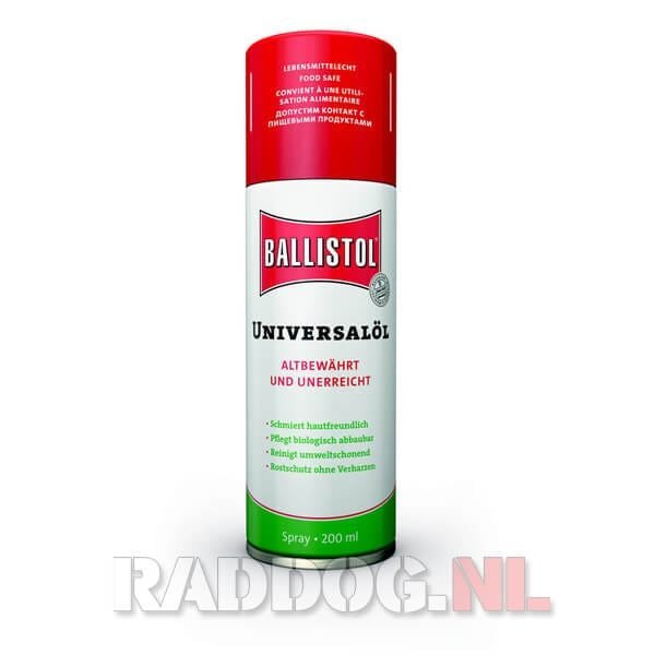 Als spray bevat Ballistol Olie, om het milieu te ontlasten, perslucht als drijfmiddel. Het meest verbazingwekkende kenmerk van Ballistol is misschien wel zijn universaliteit. Er zijn andere beschermers/smeermiddelen op de markt, maar geen van hen heeft hetzelfde brede scala aan toepassingen, in combinatie met andere unieke mogelijkheden, in vergelijking met Ballistol.