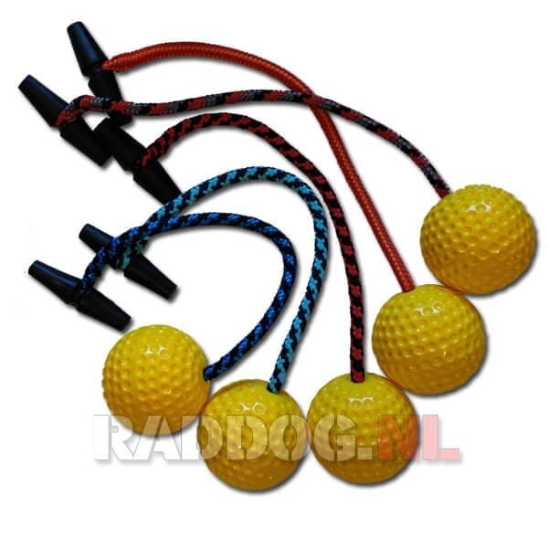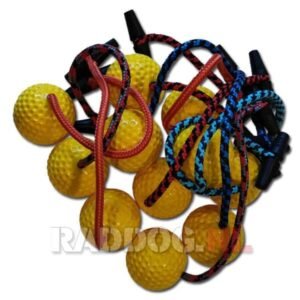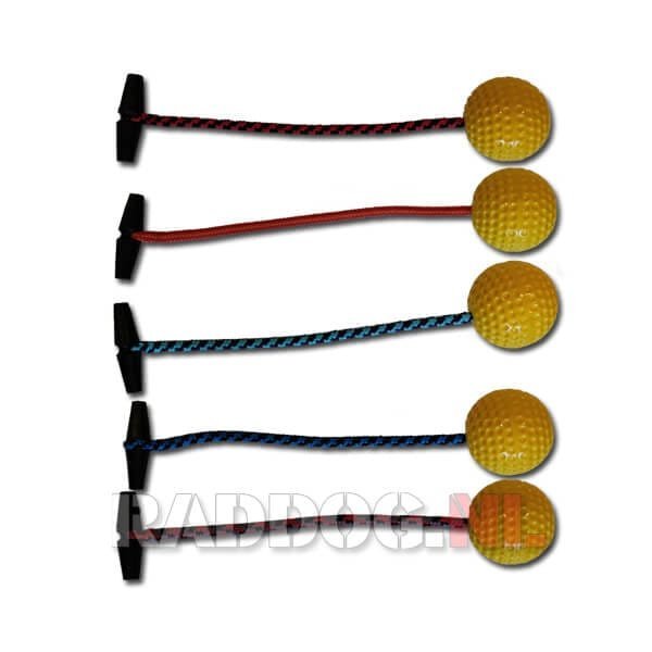 De drijvende bal met koord en klosje is ideaal voor de training. Niet zijn ze alleen beresterk maar ook in verschillende grootte verkrijgbaar. Zo is er voor elke hond een passende bal. Door zijn golfbal-achtig patroon leert de hond deze bal ook goed vast te houden.