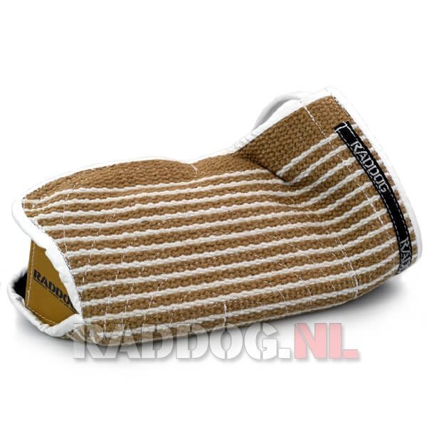 De bijtmouw is met name geschikt voor de training. Door zijn compacte uitvoering is de mouw zeer wendbaar en laat zich goed sturen door de helper. Ook deze variant is in 3 verschillende hardheden verkrijgbaar zodat er tijdens de opbouw voor een juiste wig hardheid kan worden gekozen. Zo kan de helper werken aan een goede en vaste beet van de hond in opbouw. Ook is er een keuze voor Jute, Nylcot of White PAD afwerking.