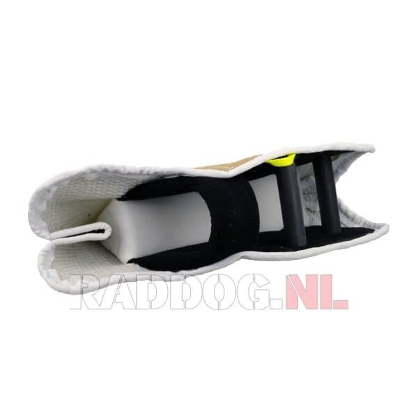 Ook is er een handige lus gemaakt in een opvallende gele kleur. Hier kan gemakkelijk een lijntje aan gemaakt worden. Niet voor niets worden deze mouwen frequent gebruikt bij de IGP / IPO trainingen. Natuurlijk zijn de bijtmouwen ook geschikt voor het Schutzhund programma’s, GH programma’s maar ook voor de training van dienst- en interventiehonden.