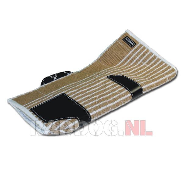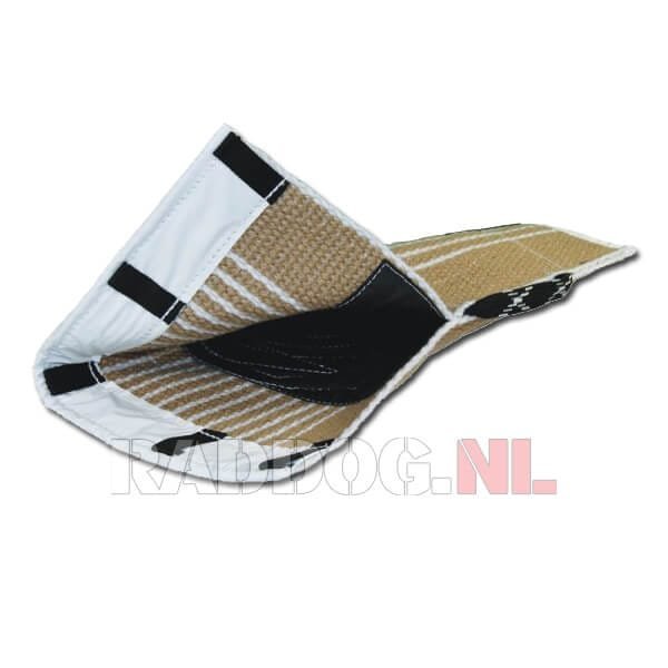 De RADDOG Jute overtrek met bijt positie N2P is een praktische overtrek. Deze zijn speciaal voor de RADDOG F-1 bijtmouwen ontworpen. De overtrek heeft enkele kunststof vlakken erop genaaid zodat de bijt positie van de hond duidelijk wordt. De N2P overtrek is dan ook een volledige bescherming voor de mouw. De N2P is tevens voorzien van een stevige handgreep.