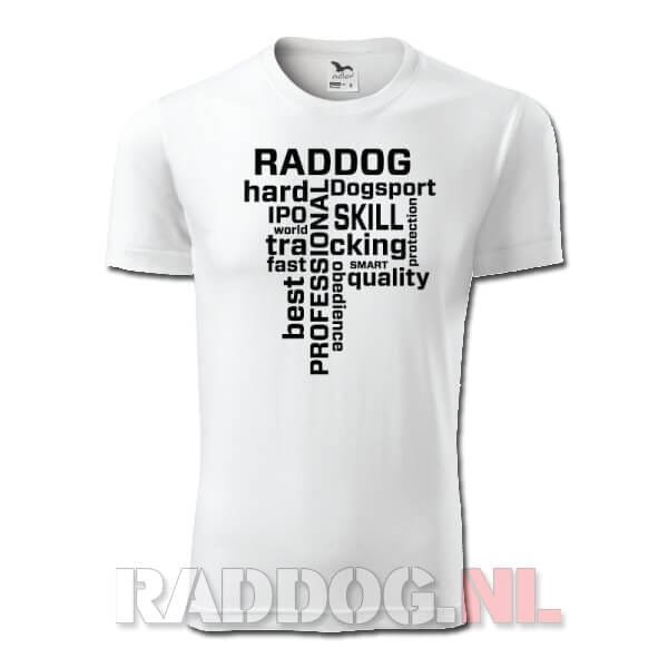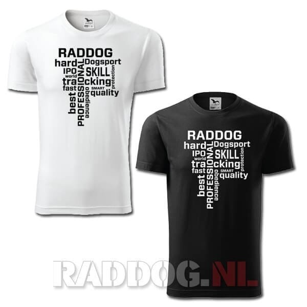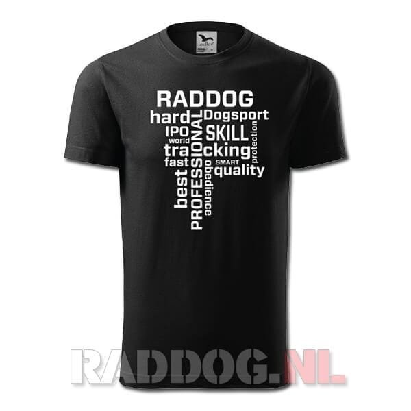 Het RADDOG T-shirt Words is een hoogwaardig maar vooral ook een comfortabel T-shirt. Aan de voorzijde is het shirt voorzien van woorden die met hondensport te maken hebben In de kleur Zwart of Wit. Aan de achterzijde is het T-shirt bedrukt met het logo van RADDOG. Een echte must have voor de fan van hondensport.