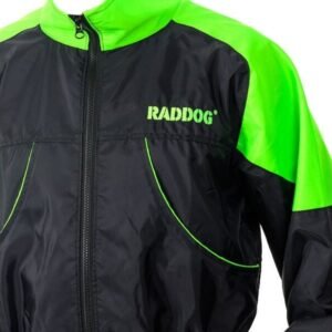Raddog dames- / heren training overall. Gemaakt van een duurzaam materiaal. Zwart en gekleurd deel van de overall gemaakt van 100% polyamide. De overall heeft geen voering en is versterkt op strategische plaatsen. Voorzien van 4 trainingszakken met een versterkte zoom. De gebruikte ritsen zijn van YKK en is waterdicht.