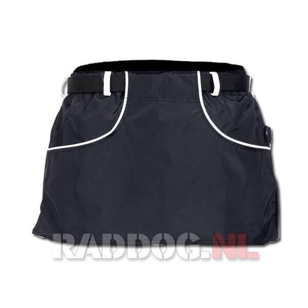 De RADDOG trainingsrok – kilt is bijzonder geschikt voor hondentraining. De trainingsrok is gedeeltelijk waterdicht met 100% polyamide afwerking. Het heeft ruime zakken zowel aan de voorzijde alsook aan de achterzijde. De zakken zijn versterkt en afgezet met een witte bies. Deze ruime zakken lenen zich bij uitstek voor het vullen van beloningen voor de hond. De achter zakken zijn zelfs zo ruim dat er een bal of bijtrol in kan worden gestopt.