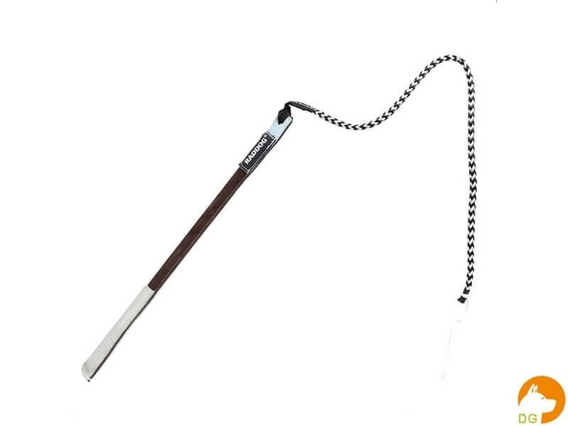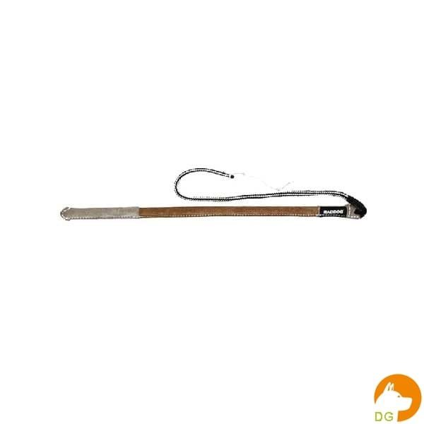 De RADDOG- zweep is gemaakt van een flexibele plastic staaf. Deze is omwikkeld met hoogwaardig leer en gestikt.