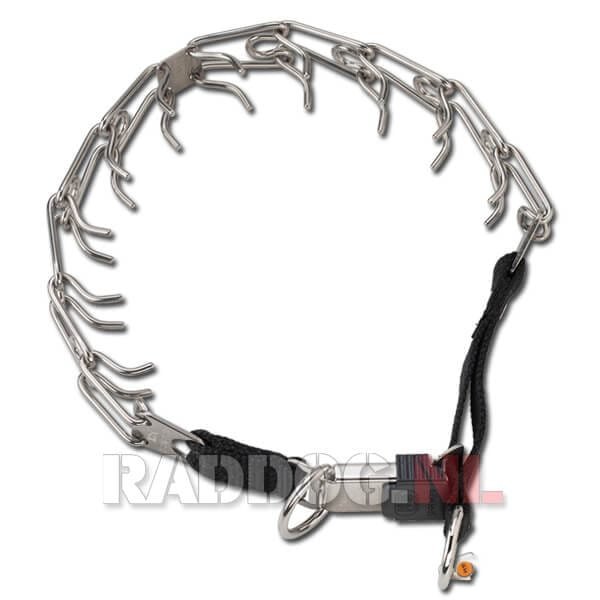 Het op maak maken van de Sprenger trainingshalsband RVS Twin O-ring ClicLock