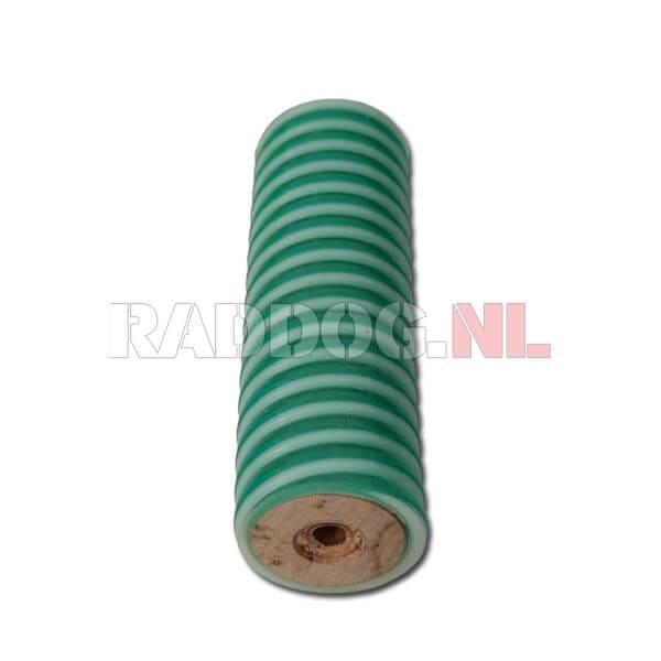 Het tussenstuk hout met PVC wordt gebruikt voor het trainen van de apporteer oefening. In het bijzonder de aanleerfase hiervan. Het laten vasthouden op commando is hierbij de oefening. Dankzij de PVC laag beschadigd het hout niet direct. De hond kan hiermee leren het stuk beter vast te houden omdat knagen niets oplevert. Ook al knaagt de hond in het begin er zullen geen stukjes hout kunnen worden afgebeten.